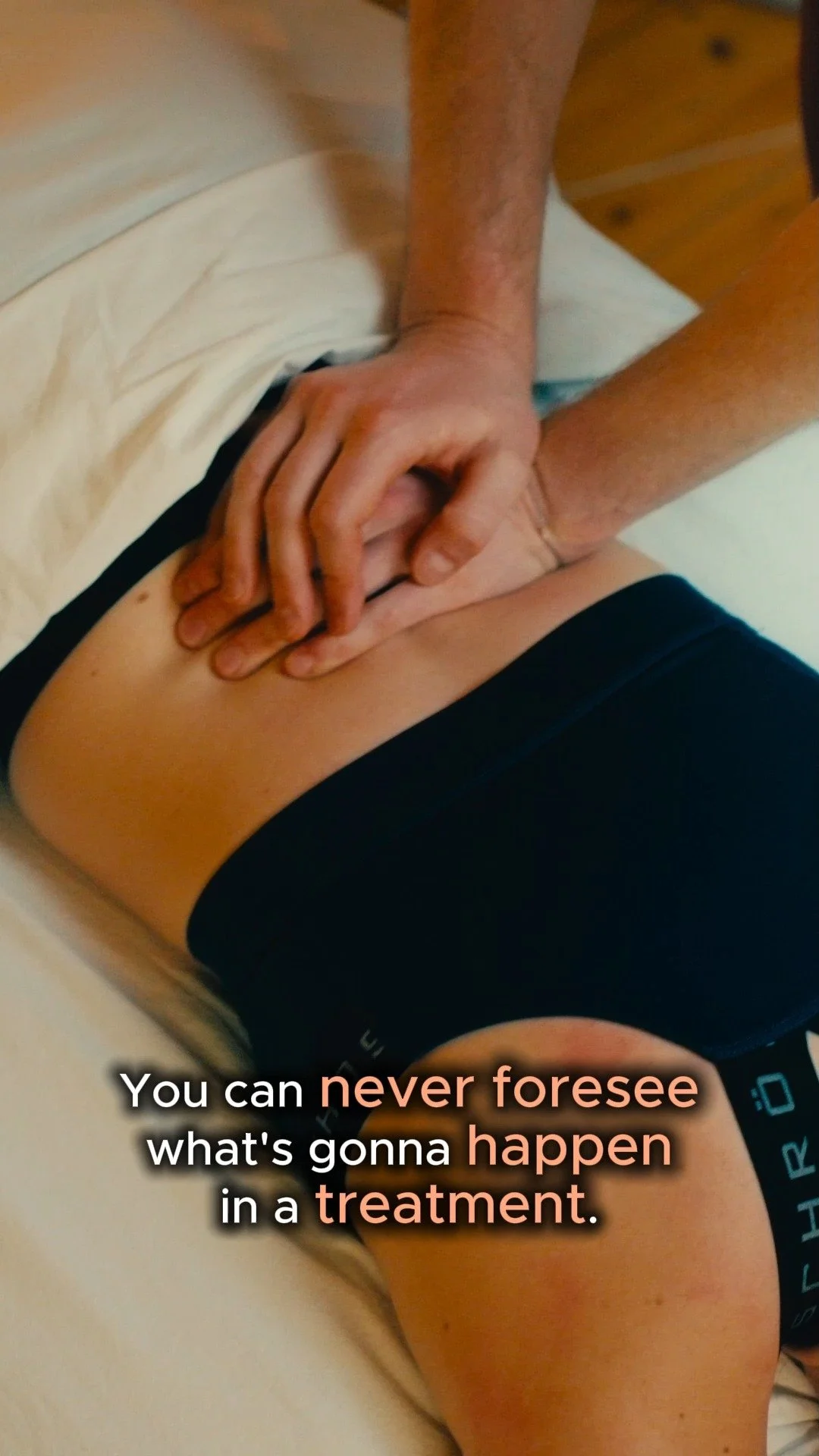Herefter bliver du behandlet på en behagelig briks iført undertøj under et tæppe – Jo mere hudoverflade jeg har at arbejde med, des bedre kan jeg mærke kroppens spændinger og arbejde præcist. Hvis du foretrækker mere tøj på, kan du bruge tyndt træningstøj – dog kan en lidt reduceret effekt forventes.